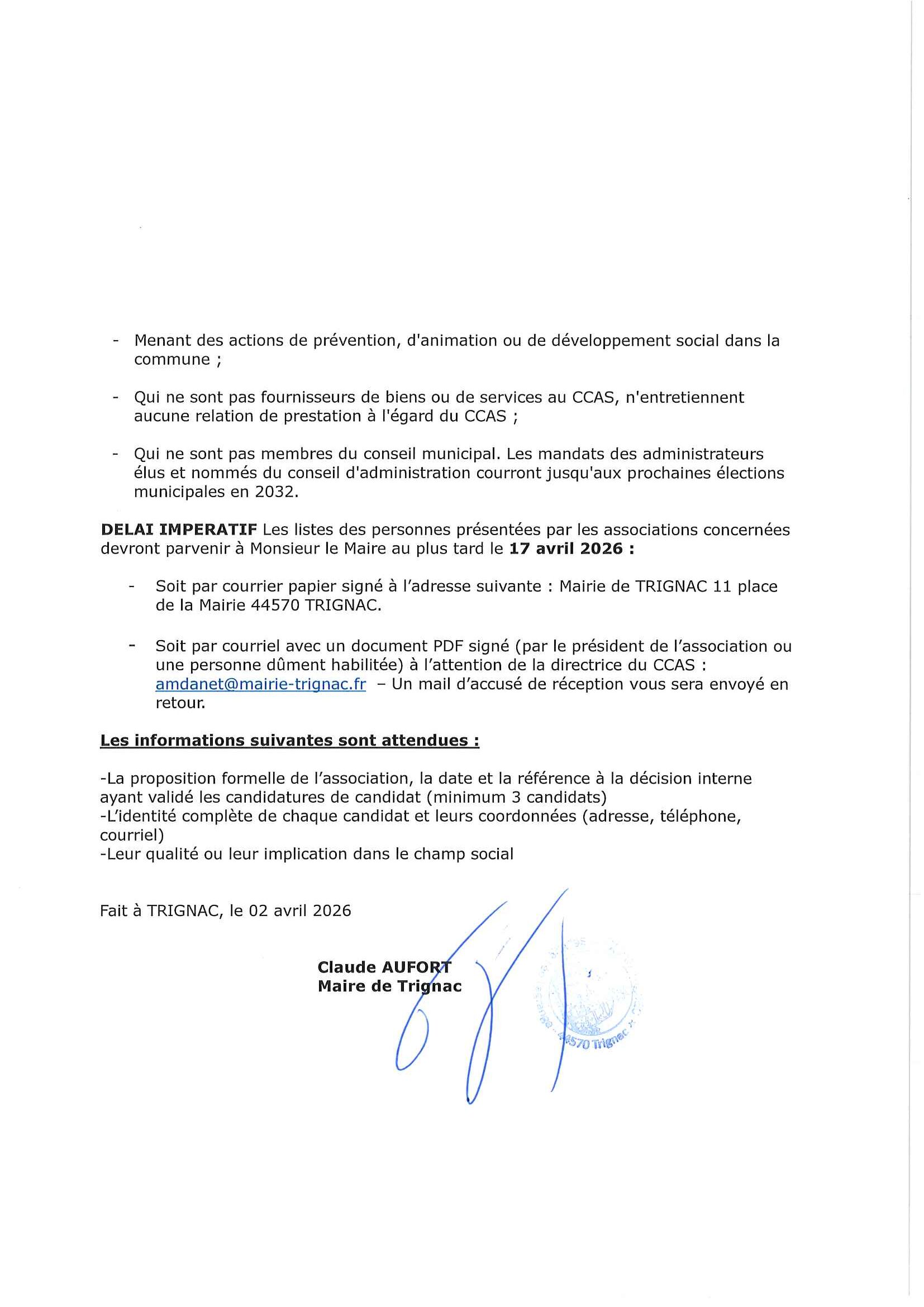 À la suite des dernières élections municipales, la Ville de Trignac engage le renouvellement du Conseil d’administration de son Centre Communal d’Action Sociale (CCAS).