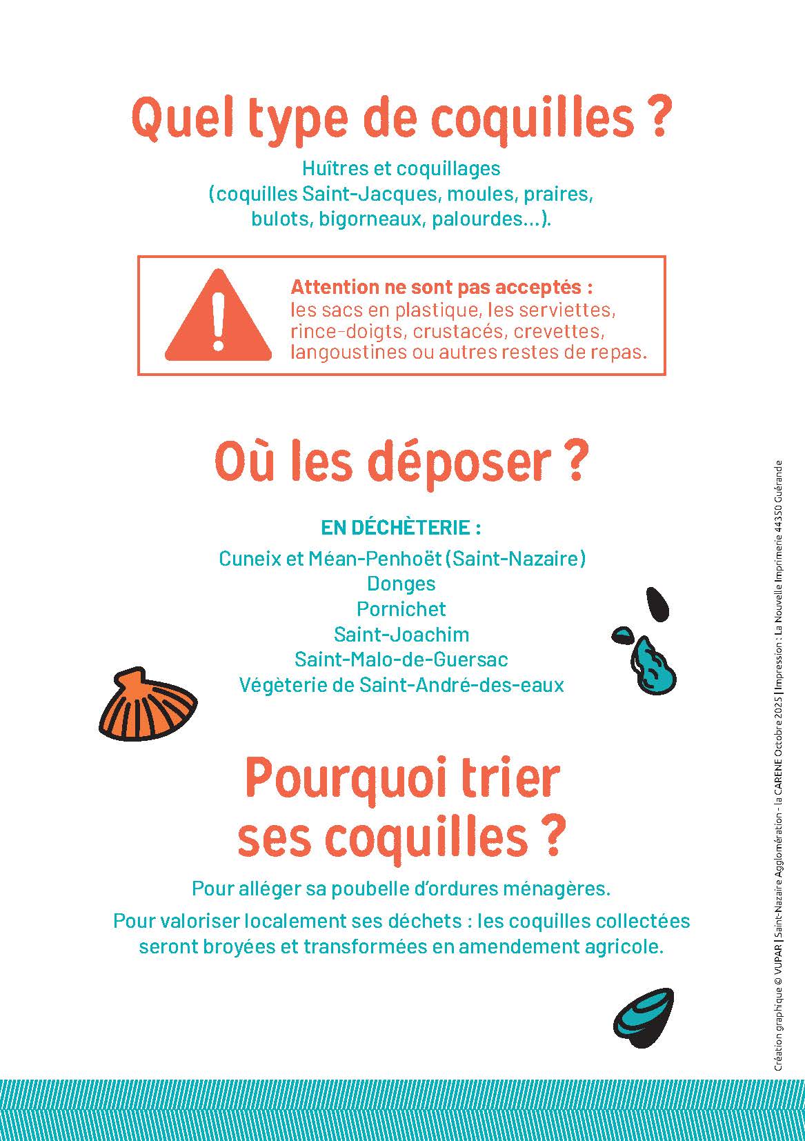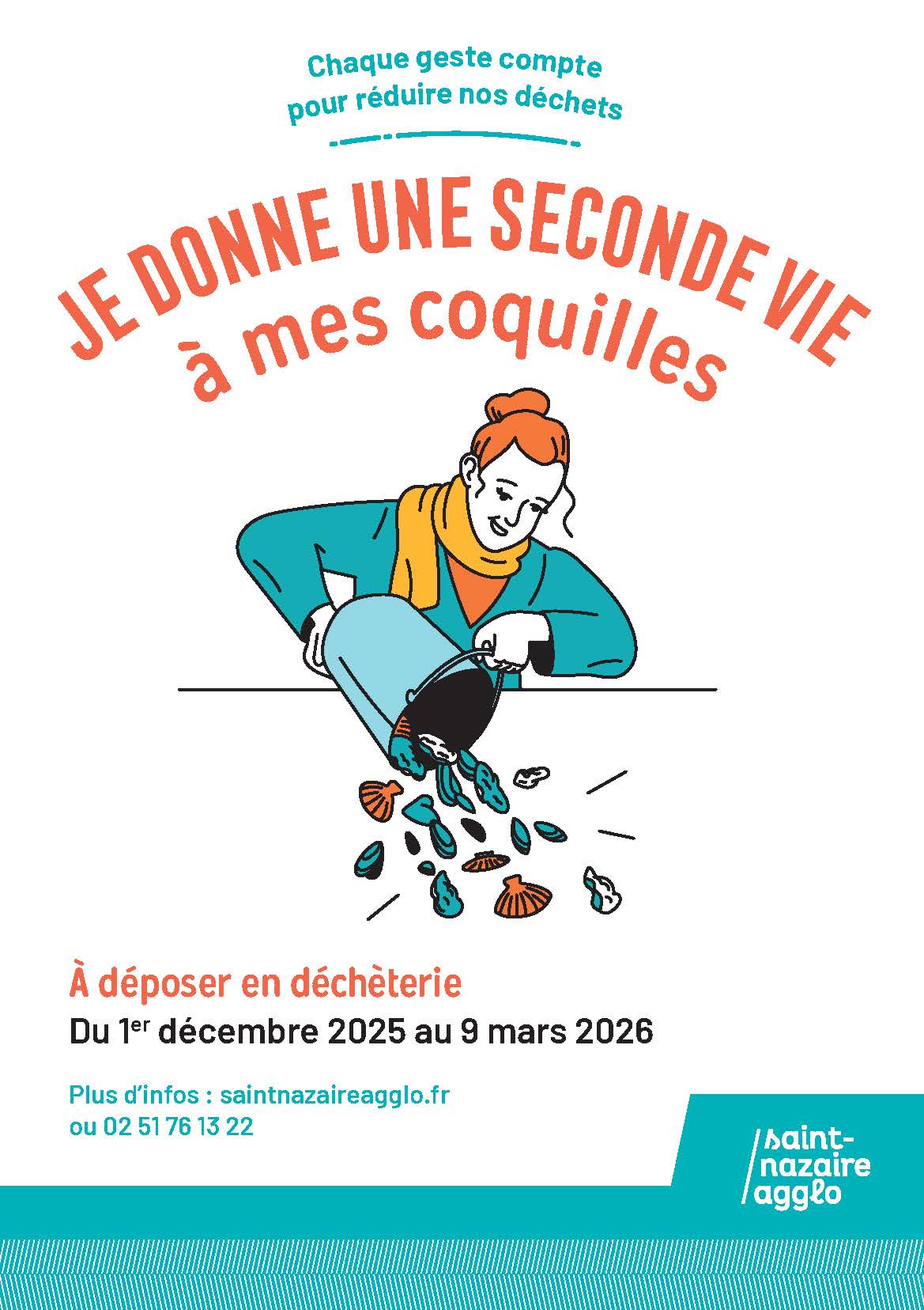 Du 1er décembre 2025 au 9 mars 2026, Saint-Nazaire Agglomération met à la disposition de ses habitant·es des points de dépôts des coquilles d’huitres et coquillages (coquilles Saint-Jacques, moules, praires, bulots, bigorneaux, palourdes…) dans les déchèteries suivantes :