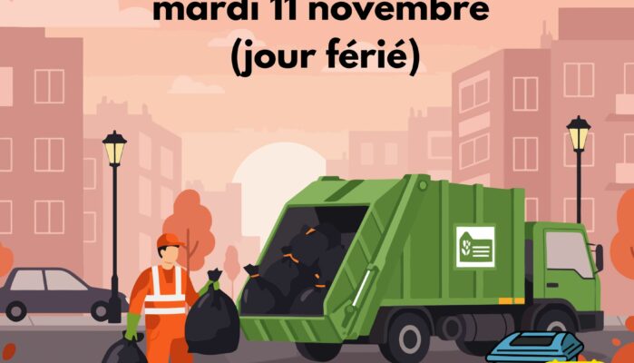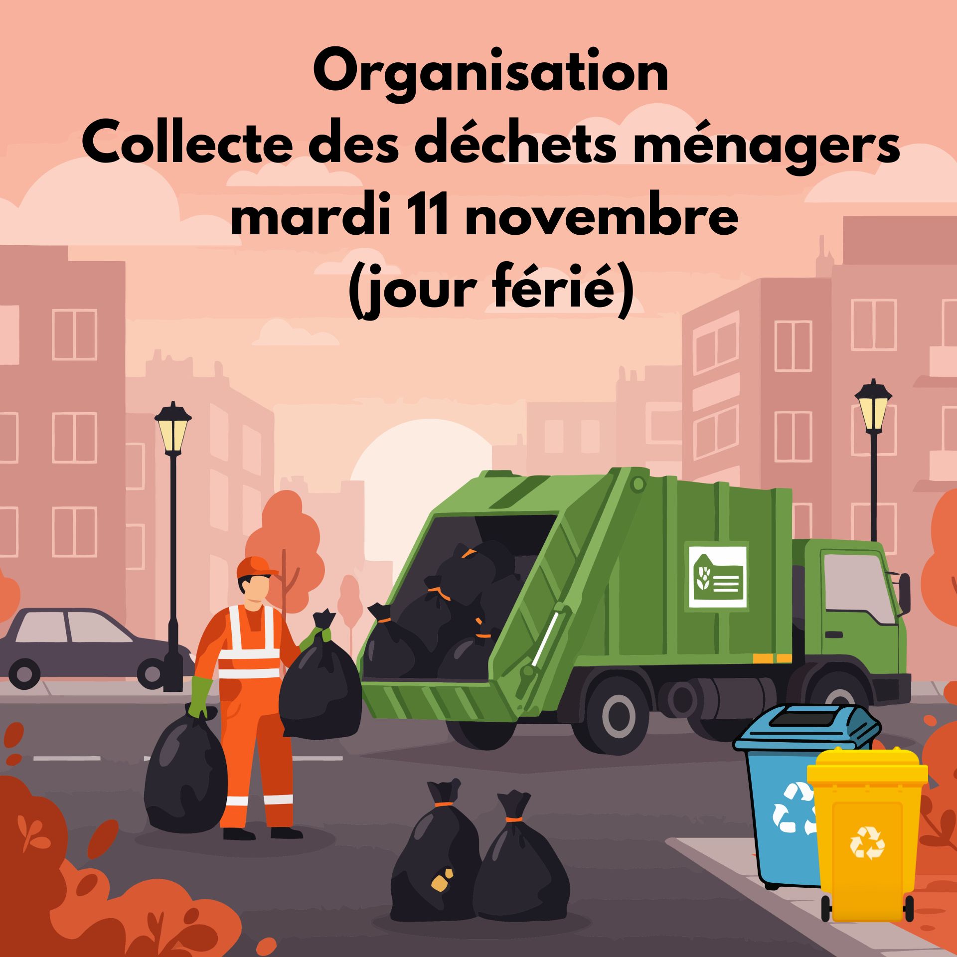 L’organisation de la collecte des déchets ménagers sera modifiée le mardi 11 novembre, jour férié. Une organisation spécifique est mise en place ce jour-là pour assurer la collecte des déchets ménagers
