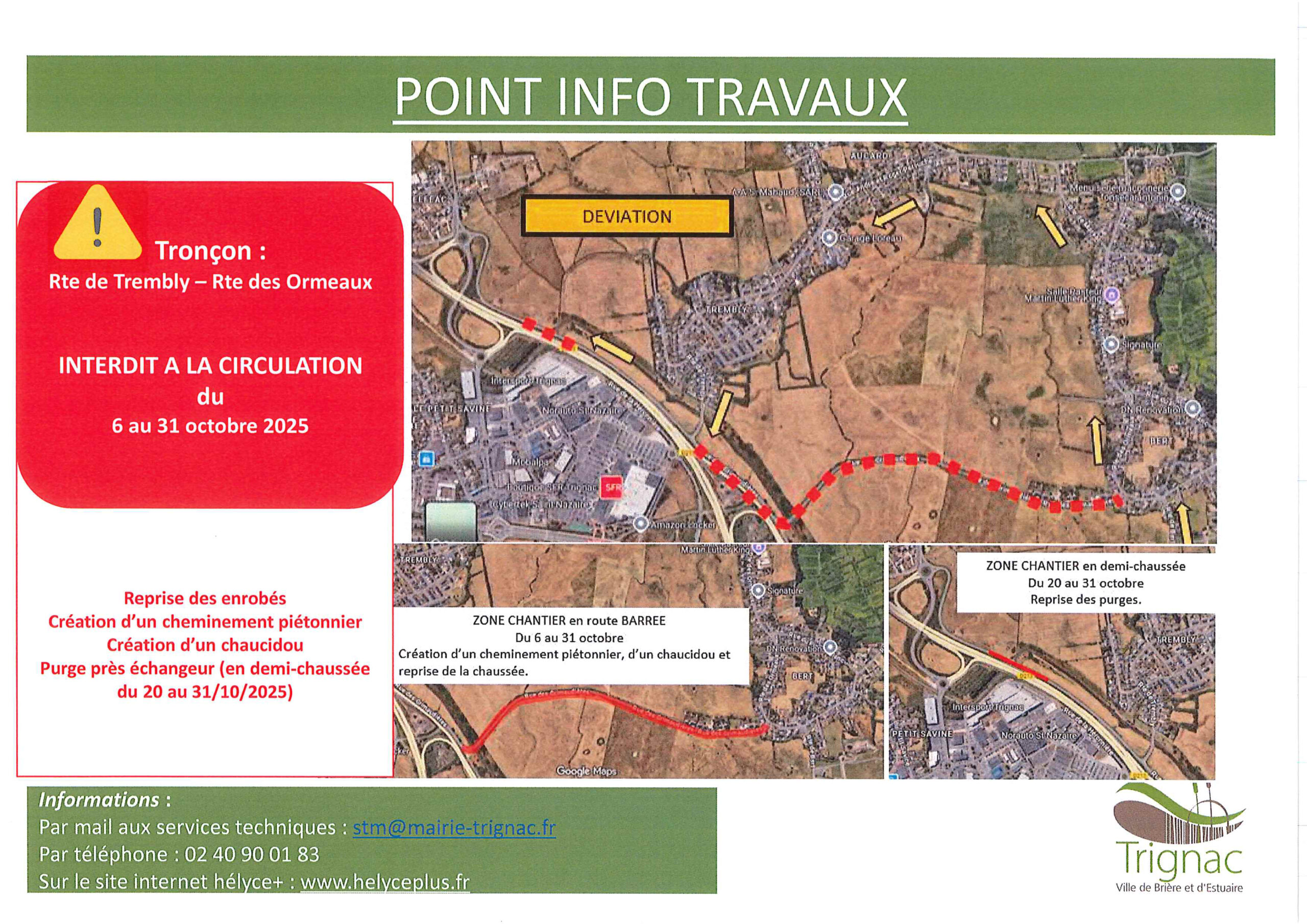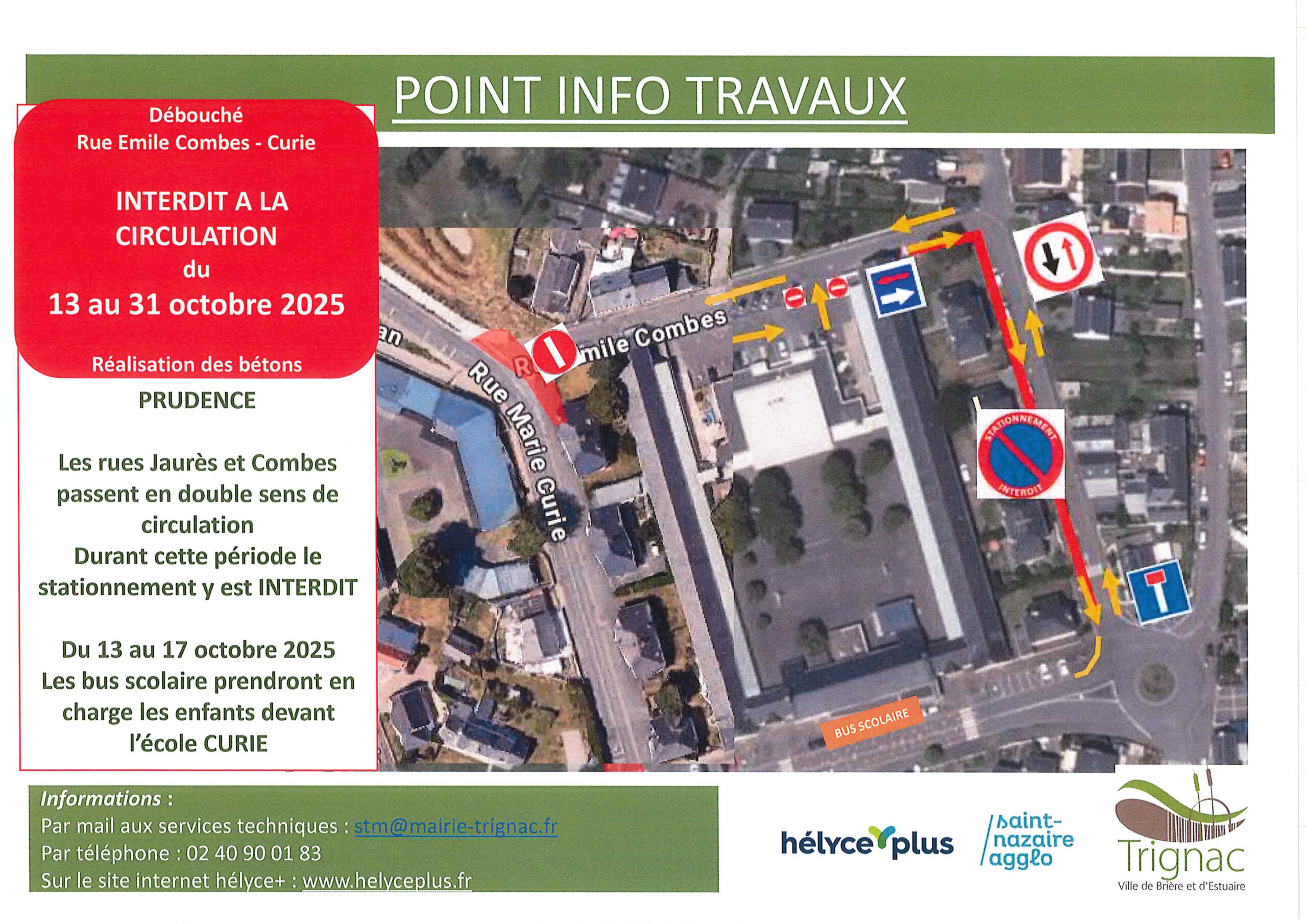 Pendant cette période des déviations seront mises en place. L’arrêt de bus Mairie de Trignac ne sera pas désservi. Veuillez vous rapprocher de l’arrêt Edouard Herriot