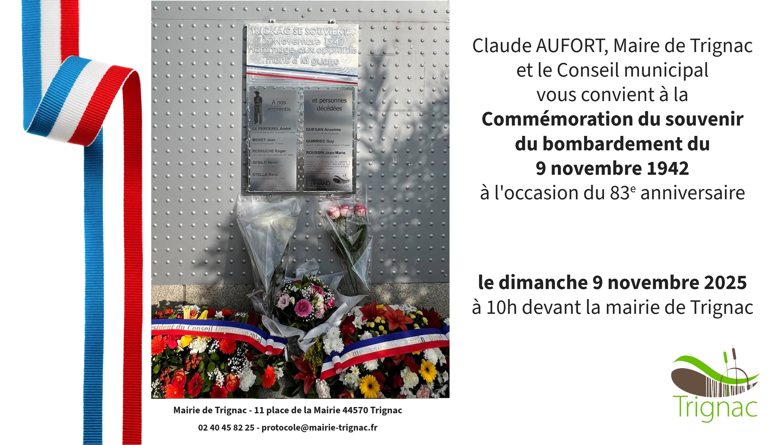 Lieu : Devant la Mairie - 11 place de la Mairie 44570 Trignac