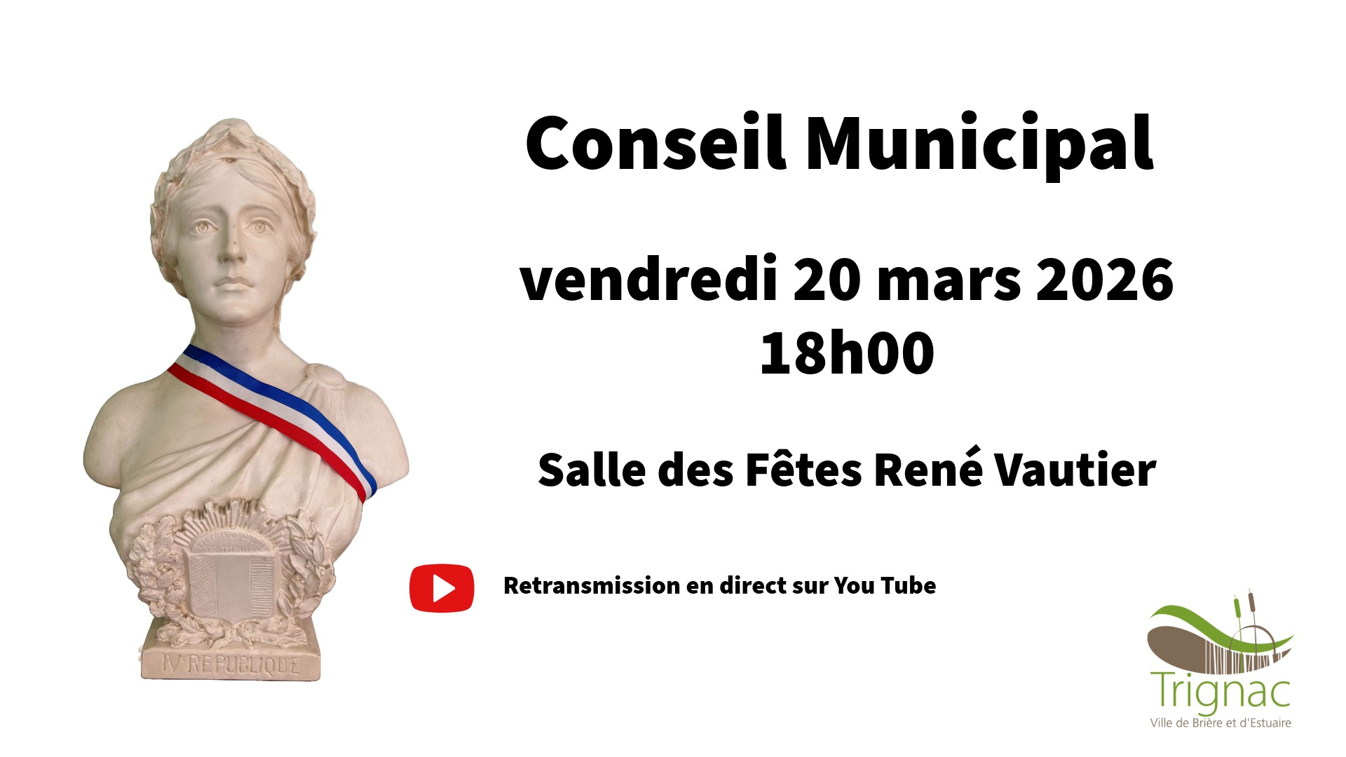 Le Conseil municipal aura lieu vendredi 20 mars à 𝟭𝟴𝗵 𝗮̀ 𝗹𝗮 𝘀𝗮𝗹𝗹𝗲 𝗱𝗲𝘀 𝗳𝗲̂𝘁𝗲𝘀 𝗥𝗲𝗻𝗲́ 𝗩𝗮𝘂𝘁𝗶𝗲𝗿.