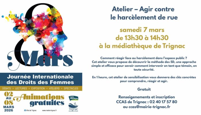 Dans le cadre de la Journée Internationale des Droits des Femmes, la ville de Trignac vous propose un atelier sur la thématique