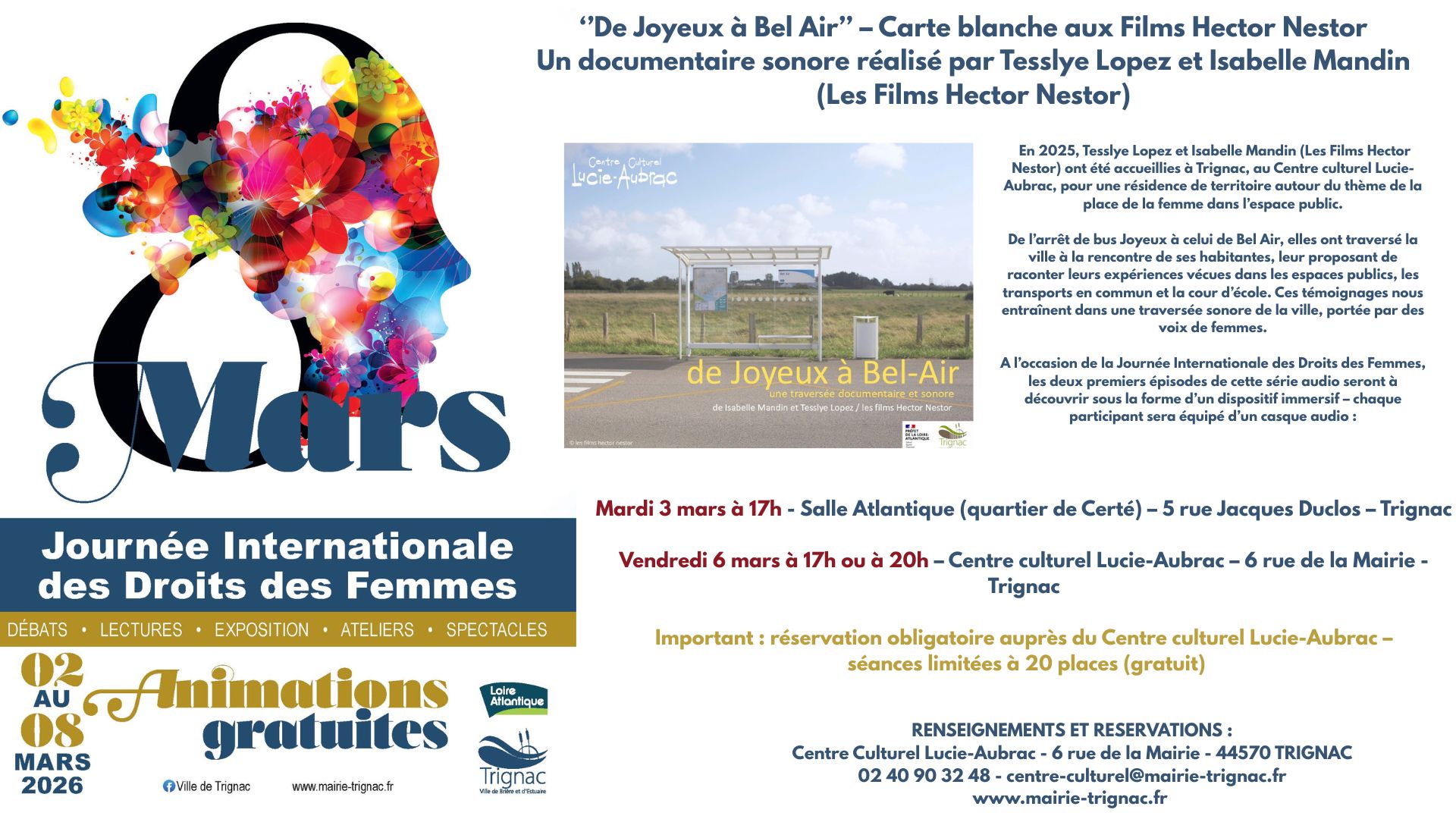 Important : réservation obligatoire auprès du Centre culturel Lucie-Aubrac – séances limitées à 20 places (gratuit)