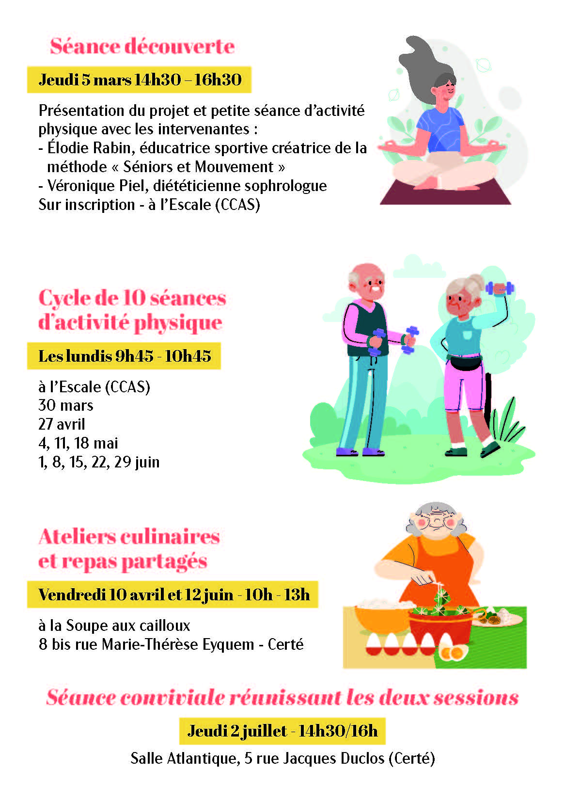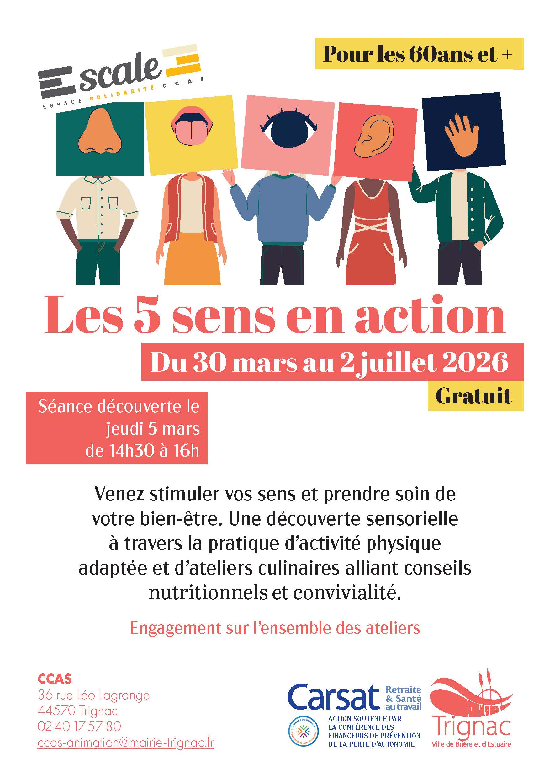 Venez stimuler vos sens et prendre soin de votre bien-être. Une découverte sensorielle à travers la pratique d'activité physique adaptée et d'ateliers culinaires alliant conseils nutritionnels et convivialité.