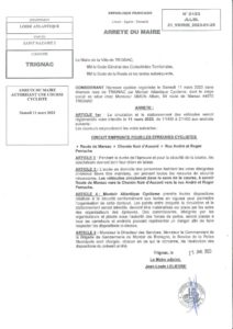 21_VOIRIE_2023-01-25 Arrêté du Maire autorisant une course cycliste samedi 11 mars 2023