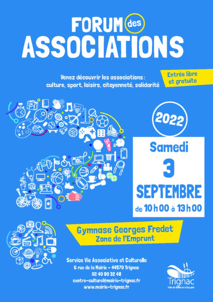 Le Service vie associative et démocratie de proximité organise chaque année, en septembre : le forum des associations et Sport en fête en partenariat avec l’Office municipal des sports. Ce rendez-vous vous permettra de promouvoir vos activités, d’accueillir de nouveaux adhérents, de nouveaux bénévoles et de partager vos expériences. Les associations désireuses de participer au prochain forum des associations organisé à Trignac peuvent compléter le formulaire de candidature ci-dessous.