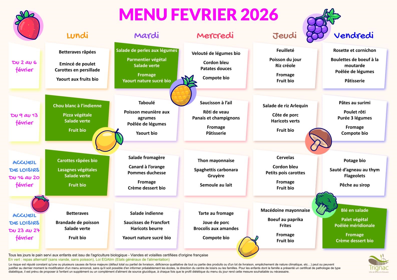 Menus du mois de février