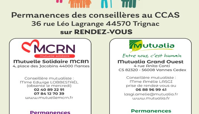 Retrouvez les différentes permanences des conseillères des mutuelles communales au CCAS, 36 rue Léo Lagrange