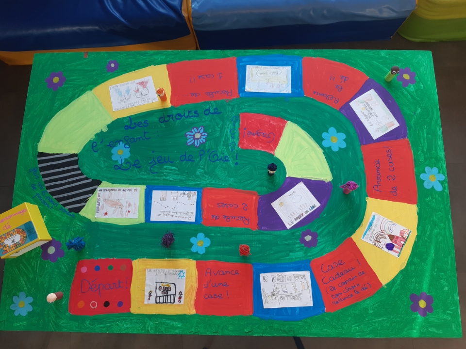 Suite à la lecture d’un livre sur les droits des enfants, les enfants de CP/CE1 ont créé un jeu de l’oie, ils ont sélectionné des droits à inscrire dans le jeu et définis les règles du jeu. Ce nouveau plateau de jeu de l’oie créé et réalisé par les enfants vient désormais enrichir la collection de jeux accessibles à tous les enfants de l’accueil périscolaire et de l’accueil de loisirs. Bravo aux enfants.