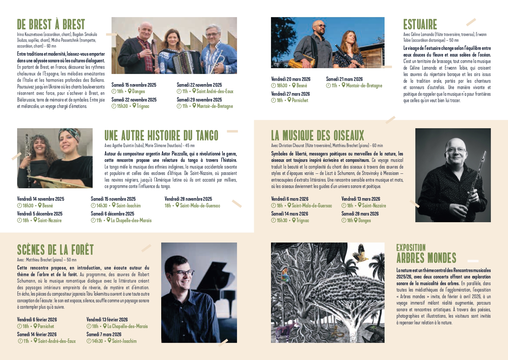 Les Rencontres musicales sont des rendez-vous réguliers, organisés tout au long de l’année par les médiathèques de la Carene, avec la complicité du Conservatoire de Saint-Nazaire. Cette formule originale a pour mérite de mêler les arts à l’univers des collections des médiathèques et de créer ainsi des rendez-vous de haute qualité avec des partenaires culturels locaux et adaptés aux spécificités de chaque lieu.