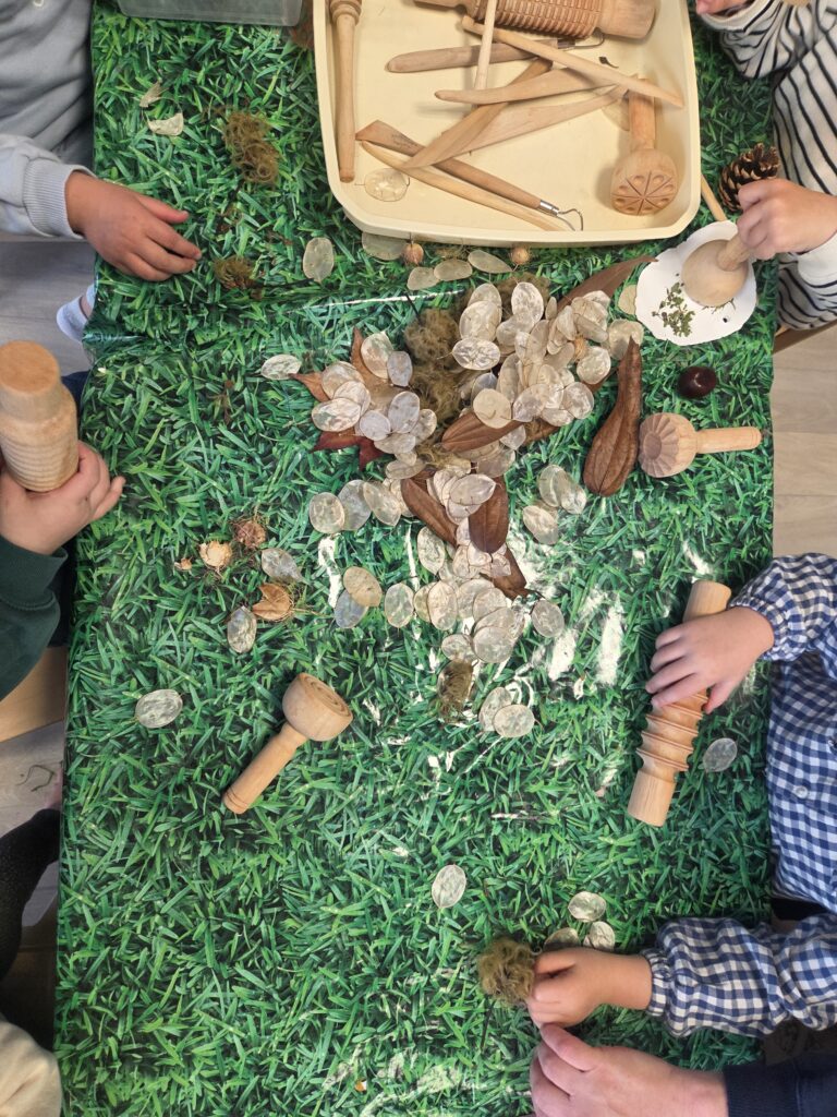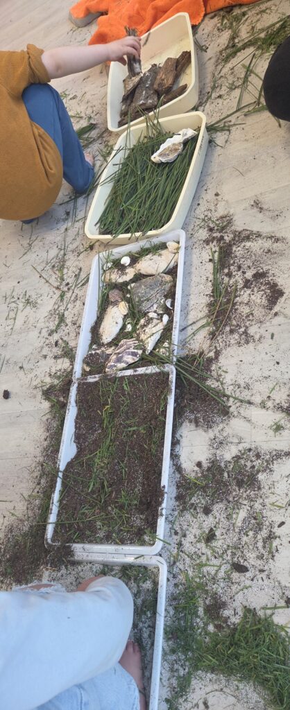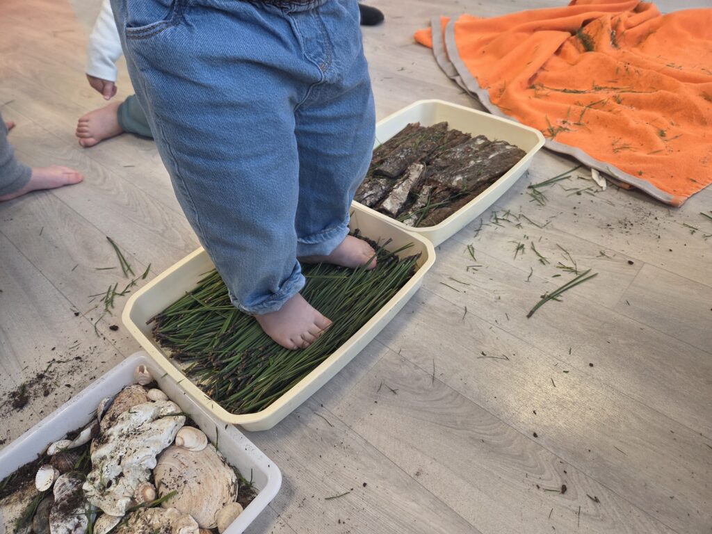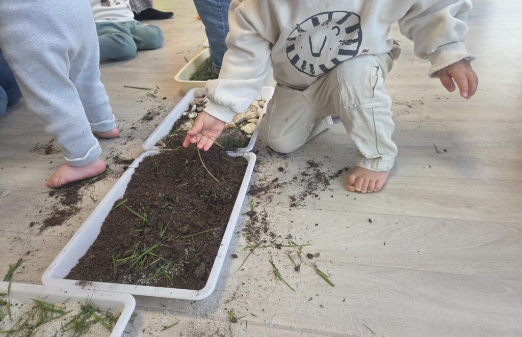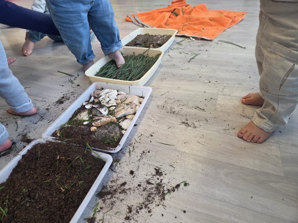 Les enfants ont ainsi pu arpenter un parcours sensoriel et découvrir avec les mains et les pieds différentes textures et matières naturelles.