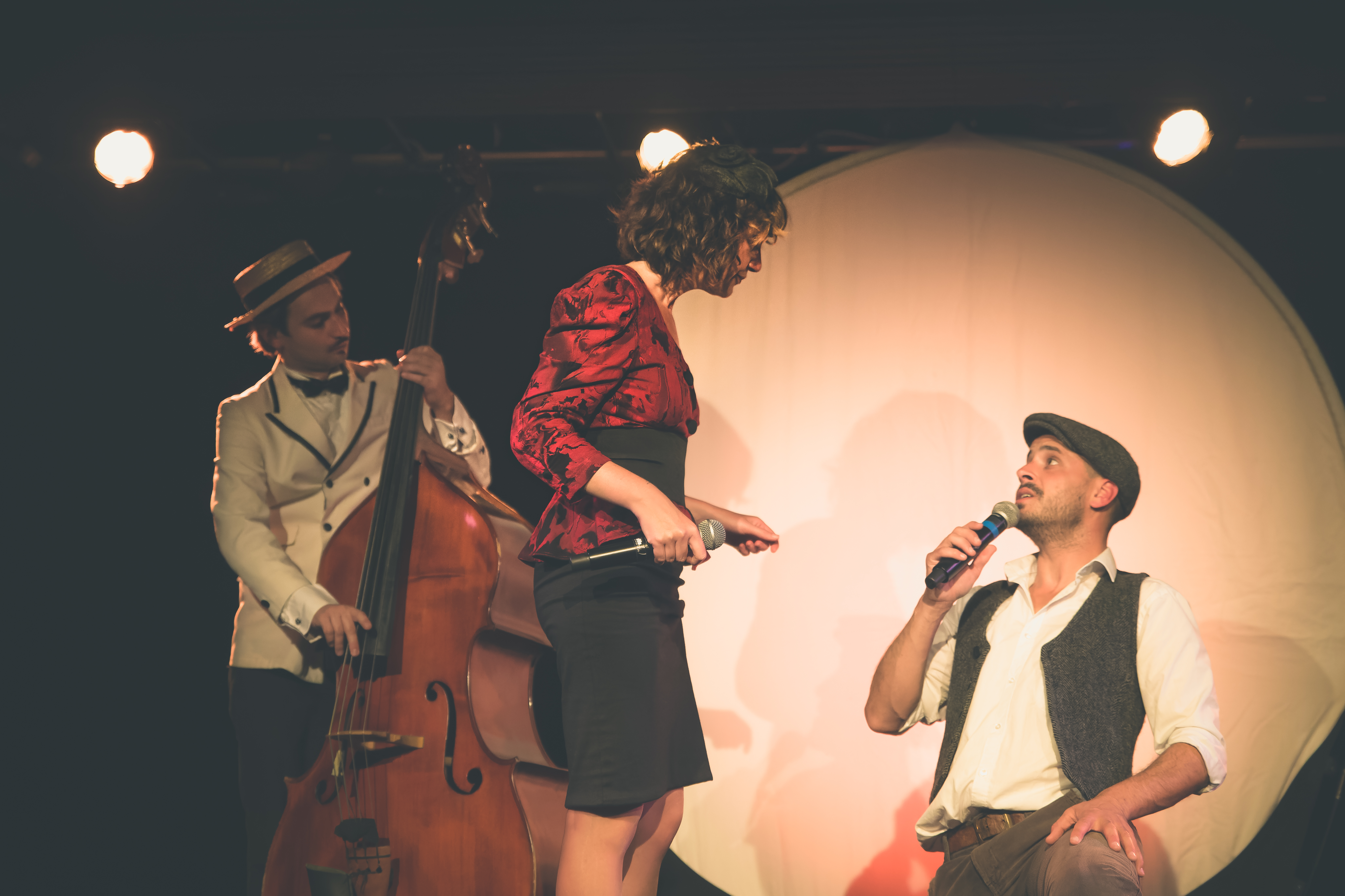Concert Jour de Fêtes – Emilie Drouet (Gina, Chant) – Corentin Rotureau (Léon, Guitare) – François Saumonneau ( Diego, Contrebasse) Photos ©Karima Sky Photographie – Ville de Trignac